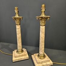 Pair of Late Victorian Marble Brass Mounted Table Lamps