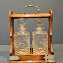 Victorian Oak and Silver Plated 2 Bottle Tantalus